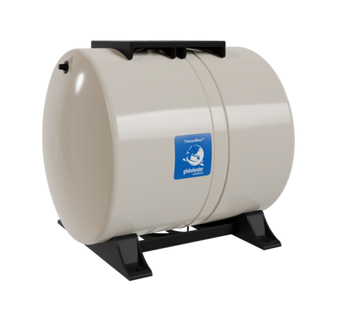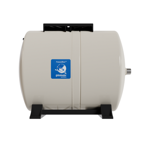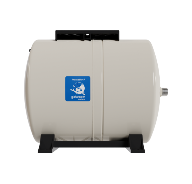 The PressureWave™ 60-liter / 15.85-gallon horizontal pressure tank is designed to deliver reliable performance for medium-sized pressure systems. Its virgin polypropylene liner and high-grade butyl diaphragm ensure extended durability, while the patented stainless-steel water connection provides a dual water/air seal to prevent leaks. The brass air valve, secured with an O-ring, adds to its maintenance-free design.